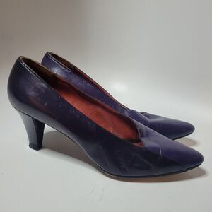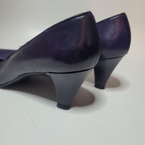 Authentic Vintage buttery soft italian lightweight leather 2 tone deep purple slip on heels by Yves Saint Laurent. GUC. See pics for further details.