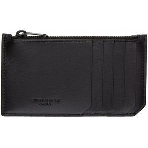 SAINT LAURENT embossed calfskin Fragments zip pouch card holder in all black.