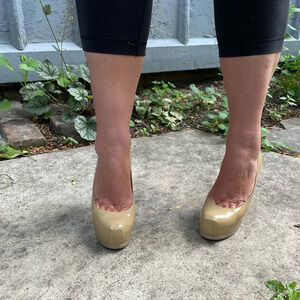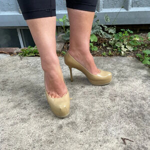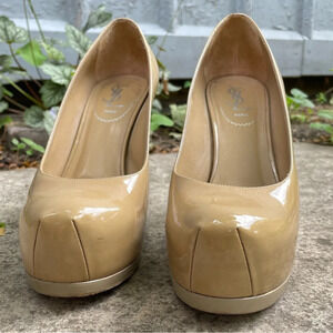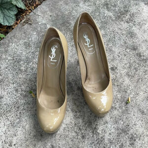 Classic Taupe Heels from YSL. High stiletto heel, complimented by the platform.