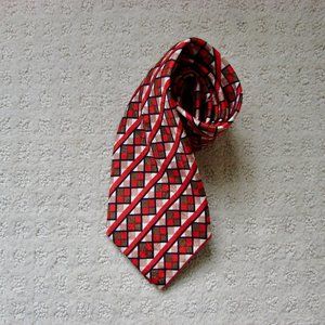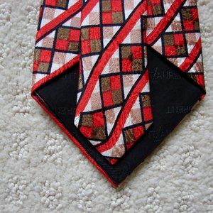 YSL Tie Yves Saint Laurent Cravates Silk Tie Red Green Black Geometric Pattern Tie ~ on the back of the logo tag states 100% which probably means 100% Silk (feels like Silk)