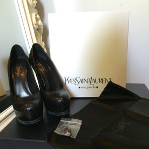 Authentic Yves Saint Laurent Tribtoo black caviar leather pumps.