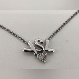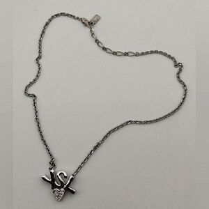 Silver tone YSL necklace and rhinestone heart pendant,no stones missing.