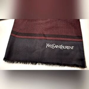 YSL Yves Saint Laurent Paris France Vintage Long Fringe Silk Wool Formal Scarf