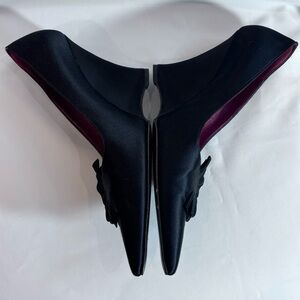 YVES SAINT LAURENT Sz 9 Pointy Wedges Satin Pumps Ruffle Detail Made in Italy Leather Insole Shoes. Stylish. Unique statement piece. Sophisticated and coquette. Dress up or down.