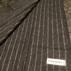 YVES SAINT LAURENT 100% Wool Charcoal Gray/Black with light grey pinstripe scarf.