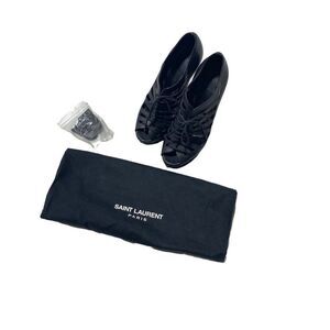 Go full glam with some preppy edge when you wear these sky high wedges from YSL! Made with buttery soft leather, these cut-out lace-up beauties will add some height and style when you wear them with your favorite cropped ankle trousers.