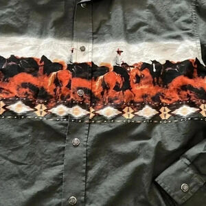 [YXL18/Adult M]Panhandle Western Print Snap Button Down L/S Olive Green Shirt