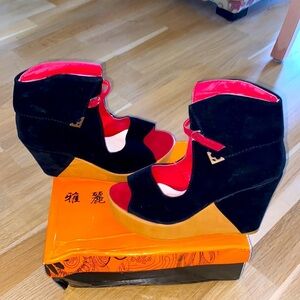 ✅Ya Li Da platforms in black & red w/ gold tone findings. 🖤❤️ NWOT