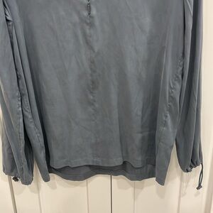 Dutch lifestyle brand YAYA Women’s soft grey tunic blouse with high collar partial front zipper, drawstring sleeves and flowy body. 59% cupro, 47% viscose, 4% elastane. Size 38 or Medium. Very good pre owned condition. Please see photos, measurements are for reference only. Reasonable offers welcome!