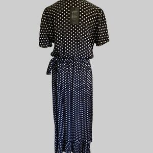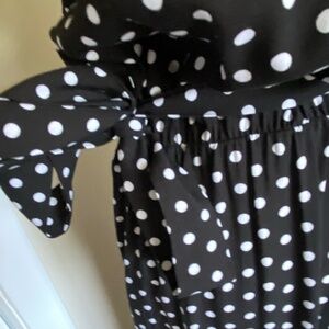 Yacun Black White Polka Dot Midi/ Maxi Wrap Dress