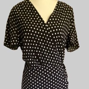 Yacun Black White Polka Dot Short Sleeve Wrap Party Vacation Resort Dress- Sz-L