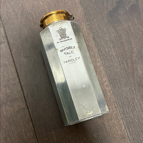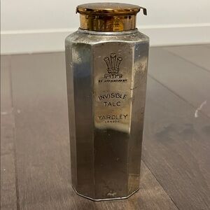 Yardley Invisible Talc Powder in a sleek silver container. Elegant and classic design. SKU ii
