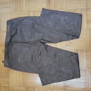 khaki color lightweight fabric shiny leaves pattern good quality Turkish brand gently used, excellent condition