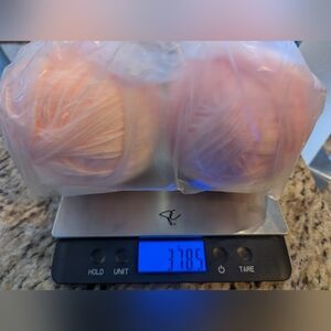 Yarn 2 balls pink and peach Large balls 378g total. The Texture is soft. Fiber content unknown.