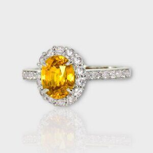 *IGI 14K 1.80Ct Yellow Sphene&Pink Diamonds Antique Engagement Ring* IGI-certified natural untreated Sphene weighing 1.80 ct set on 14K white gold luxury design band with natural pink diamonds weighing 0.52 ct. The ring combines fashion and classic design ideas and is suitable for wearing on every momentous occasion and every day.