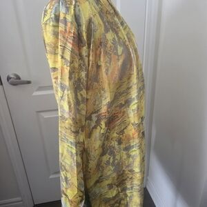 Stylish open jacket with an abstract pattern in yellow tones. Perfect for adding a pop of color to any outfit.