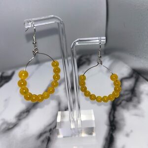 Brighten your look with these stunning yellow beaded hoop earrings. Perfect for any occasion.