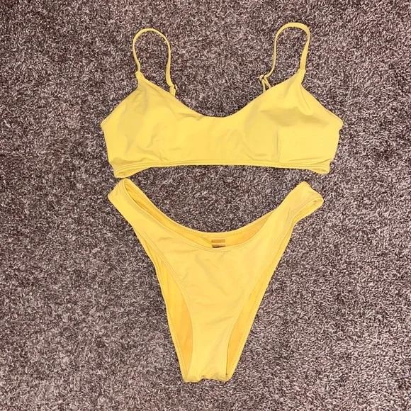 Lightly worn Garage swimsuit. Did not get the chance to wear it this summer and it is too small for me now! The top is a Medium and the bottoms are Small