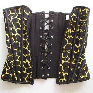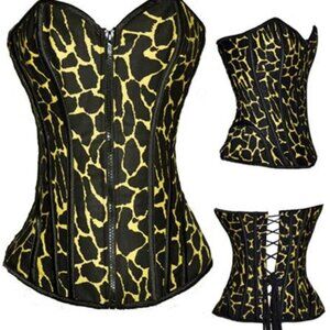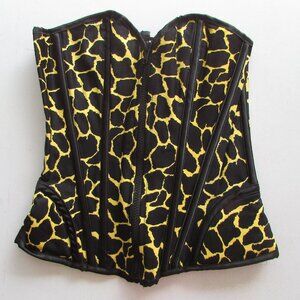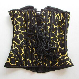 Yellow Black Animal Print Zip Front Corset - NEW