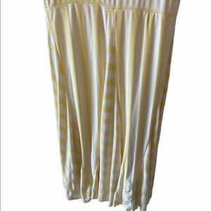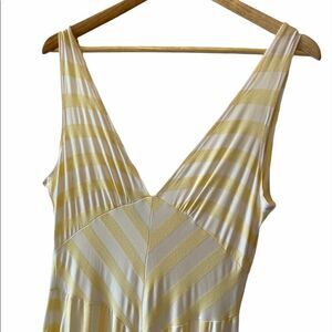 Yellow & Cream Striped Stretch Deep V MIDI Dress M