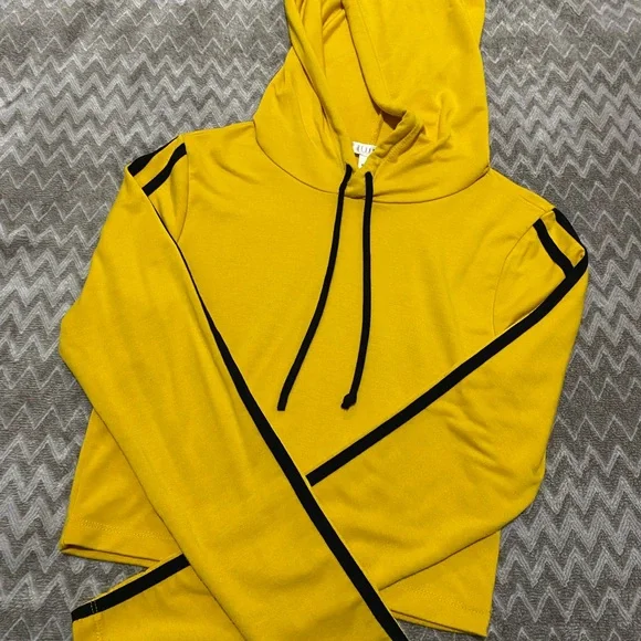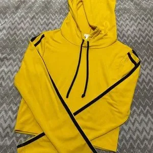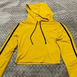 - Yellow Cropped Hoodie with Black Stripes on sleeves