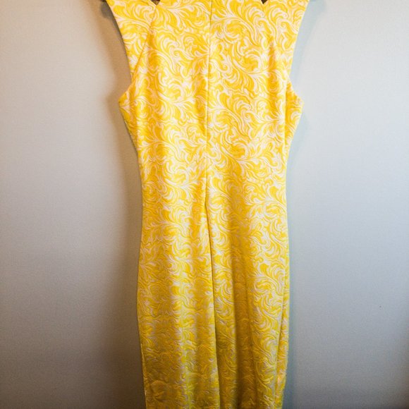Absolutely gorgeous detailing on this dress. Well made by Cache. Slight scrunching detailing on left hip. Great condition! Size 8