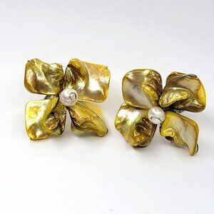 Yellow Genuine Pearl Bead Ring Asymmetric Flower Adjustable Band Ring