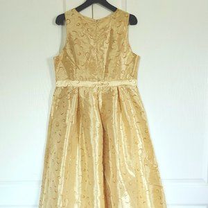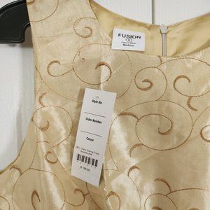 NWT Yellow Gold Dress with dark gold embroidery Zipper Back A-line Ankle length Size Med.