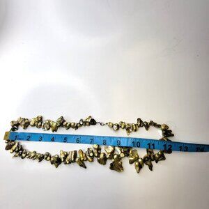 Yellow Green Mother of Pearl Keshi Large Chip Bead Necklace