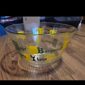 Yellow Herbs Printed In Green Large SERVING Bowl Glass Salad Bowl Kitchen Bowl