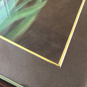 Yellow Iris Flower Original Pastel Drawing Framed Signed Phyl Henkel 14x17"