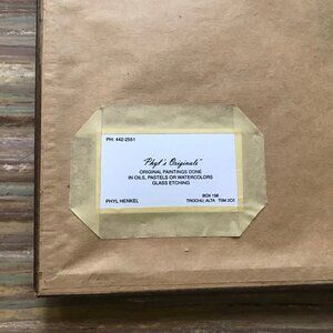 Original pastel drawing of yellow iris flowers. Signed on the right bottom side by artist Phyl Henkel and has artist card "Phyl's Original" on back of frame. Framed & matted under glass, 17" tall x 14 1/4" wide. Art size is approx. 11" x 7". Pre-owned condition: frame has heavy wear to edges, scrapes/marks/indents to brown painted surface.