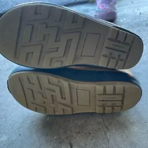 Bright yellow rain boots with black trim. Perfect for rainy days.