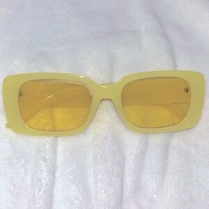 Bright yellow rectangular sunglasses. Stylish and bold.