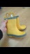 Stylish yellow rubber rain boots with gray trim. Perfect for rainy days and puddle jumping for your little one.