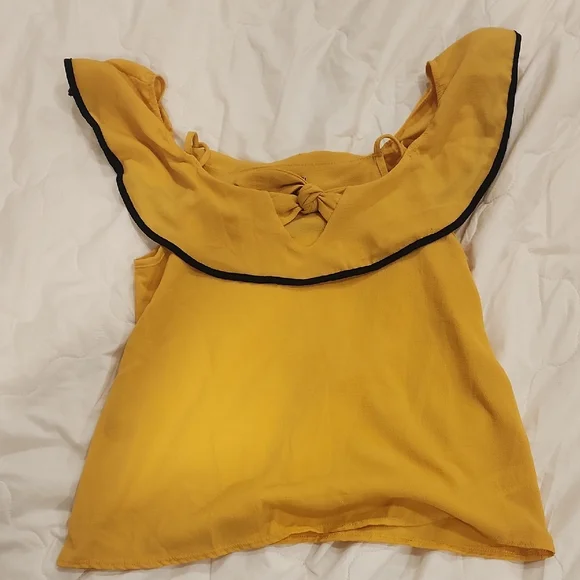 Brighten your wardrobe with this stylish yellow ruffled top. Perfect for any occasion.