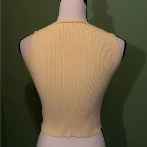 Elevate your wardrobe with this stylish yellow sleeveless ribbed top. Perfect for any occasion, it offers a comfortable fit and a chic look.