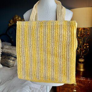 Yellow Striped Straw Crochet Tote