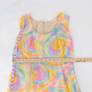The maxi length adds an elegant touch, while the vibrant colors ensure you stand out in any crowd. Whether you're twirling on the dance floor or enjoying a sunset stroll, this dress captures the carefree spirit of summer. Embrace the blend of color and comfort with this eye-catching, flowy maxi dress. Model is 5'5", 130 lbs, 30D, with a 27" waist. It's lightly worn, just like to disclose it is preowned/preloved. Few marks as shown in pics - no size tag so check measurements