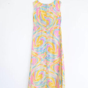 Yellow Teal Pink Tie Dye Sleeveless Sunset Rainbow Cloud Flowy Maxi Dress M