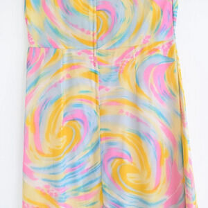 Embrace vibrant summer vibes with the Yellow, Teal, and Pink Tie-Dye Sleeveless Sunset Rainbow Cloud Flowy Maxi Dress. This stunning maxi dress features a dreamy tie-dye pattern that blends shades of yellow, teal, and pink, creating a sunset-inspired palette reminiscent of rainbow clouds. The sleeveless design and flowy silhouette offer a breezy, comfortable fit, perfect for beach days, festivals, or casual summer outings.