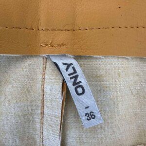 Yellow faux leather skirt.
