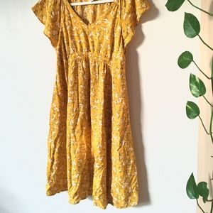 The perfect little floral dress for any stage of your pregnancy! With a relaxed fit through body and defined waist it is both flattering and comfortable. Beautiful flounced sleeve detail and a V neck