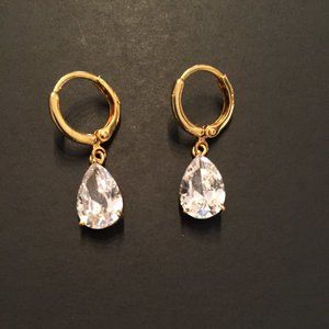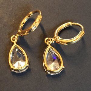 Yellow gold plated earrings with pear shaped crystal. Brand new never worn. Very sparkly.