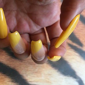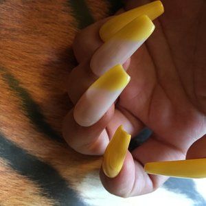 These Yellow n nude lemon swirl press on nails Can be used with sticky pads for short time wear. Or glue on for up to two week hold . For best results,