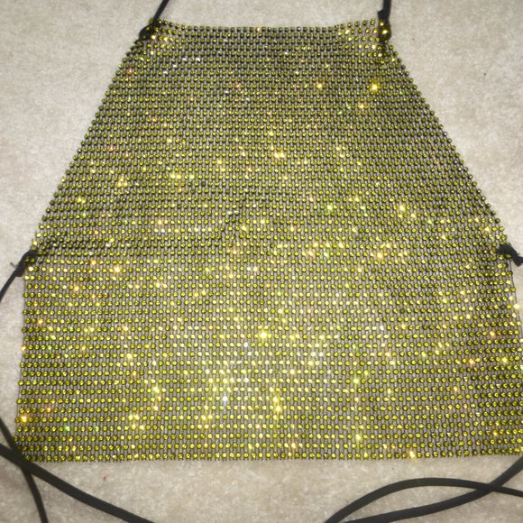 In excellent condition! Super sparkly! Very cropped and backless and semi sheer. Ties up halter style, ties up in the back. No size tag but this would fit someone who normally wears an XS.