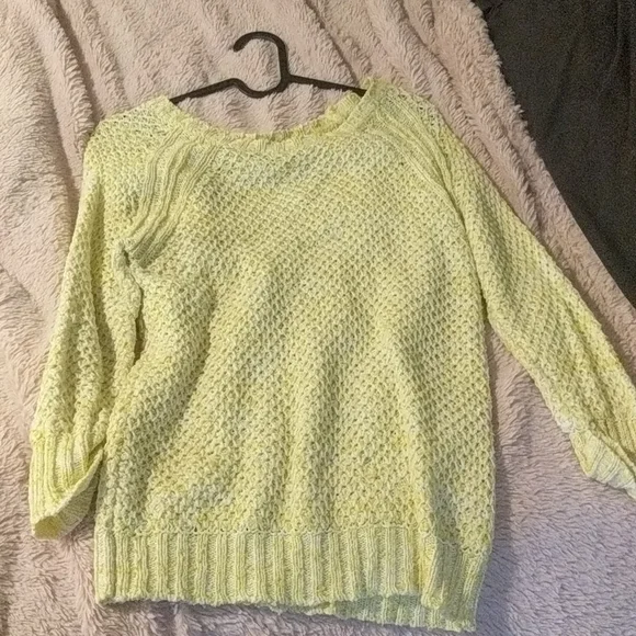 Yellow sweater. size small. one minor pull that I tried to show in the last picture, hardly noticeable. Excellent used condition.