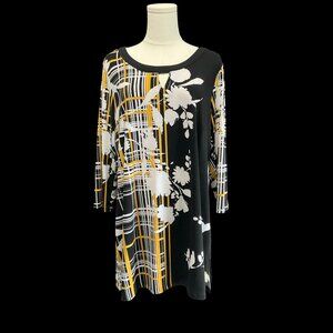Yellow/Black/White Plaid & Floral Print Tunic Top