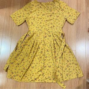 Yellow Floral Mini Wrap Dress from Korea - XS-S