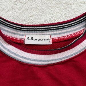 YesStyle Red Striped Sleeve & Neckline Long Sleeve Tee